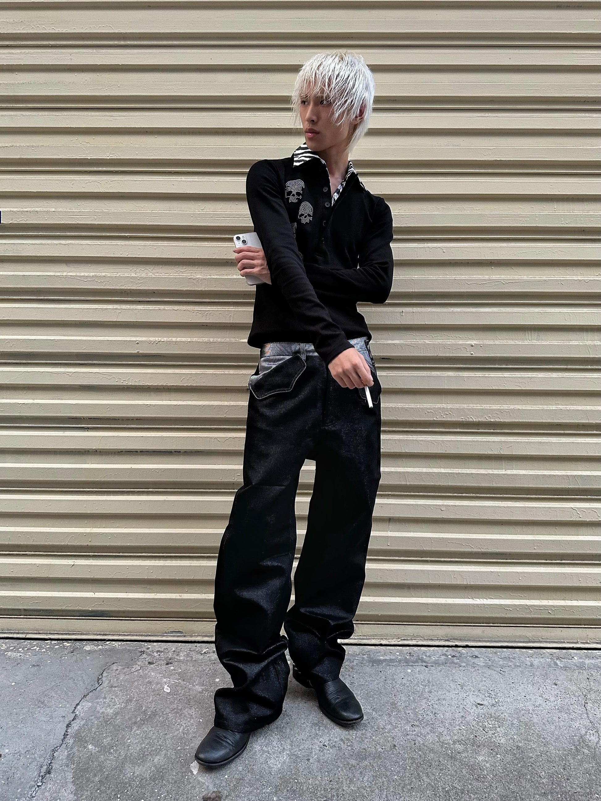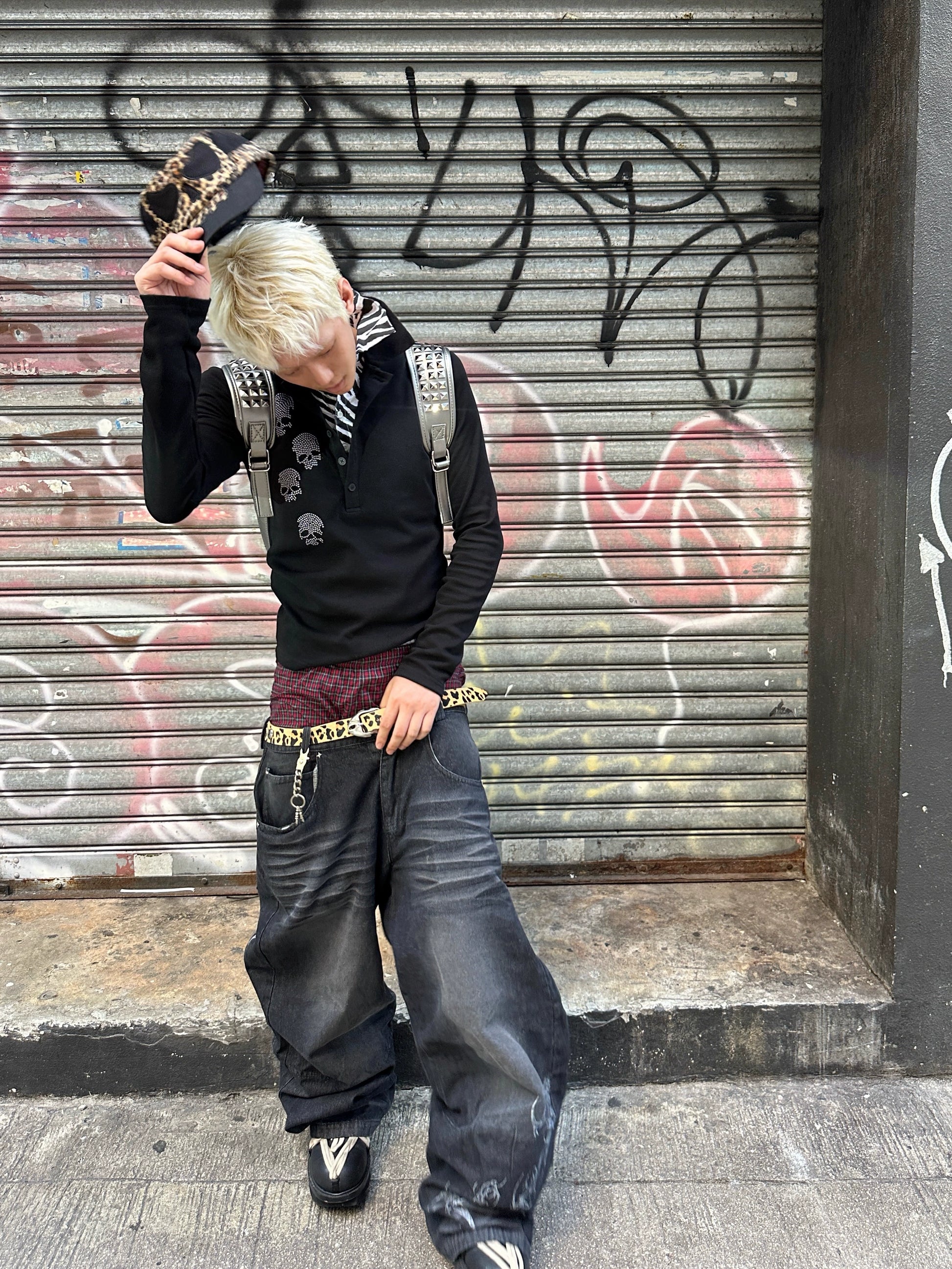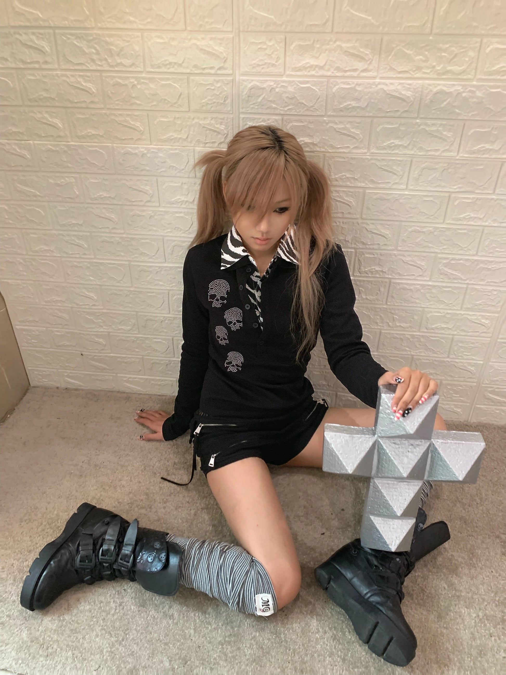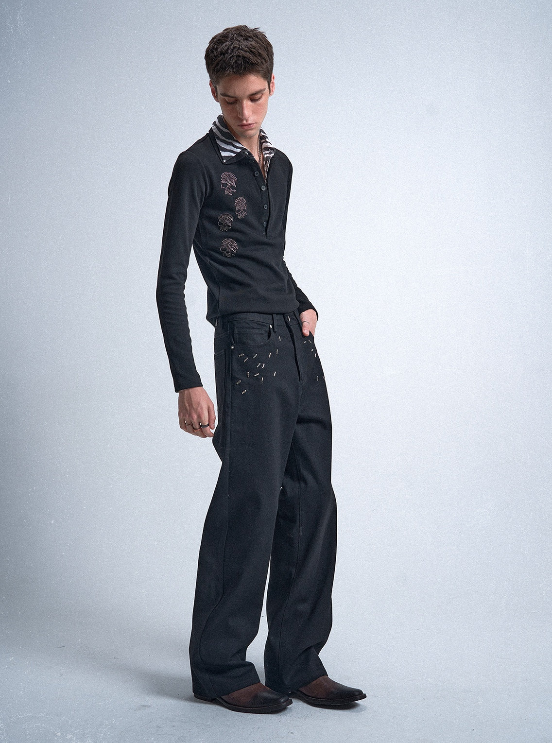 no E mosen | Double Collar Black White Striped Skull Sweatshirt【i0000000053】